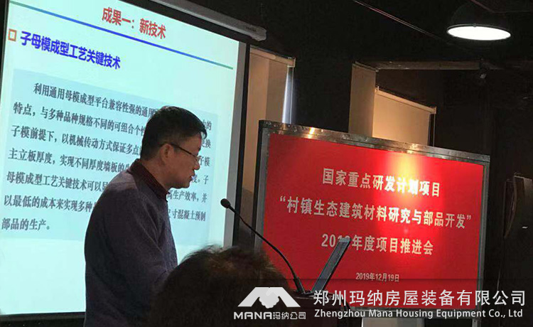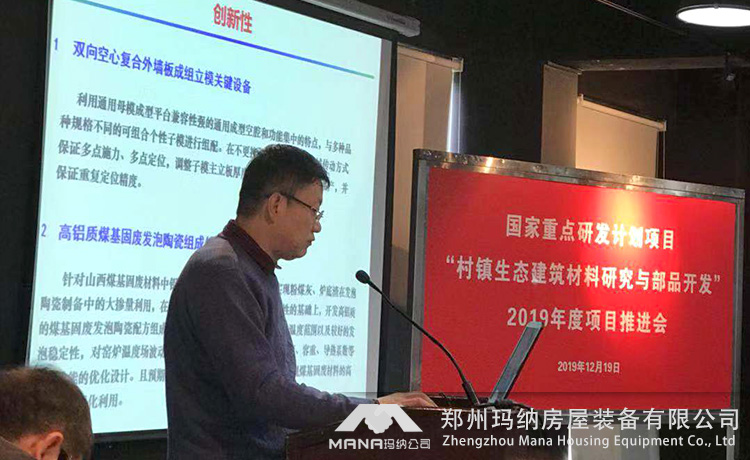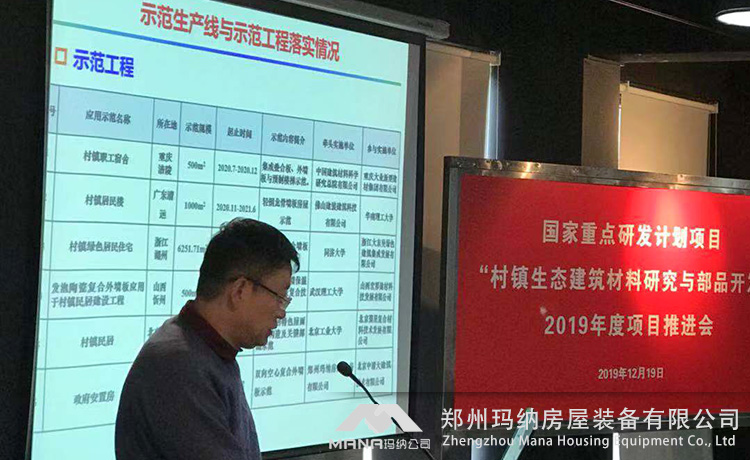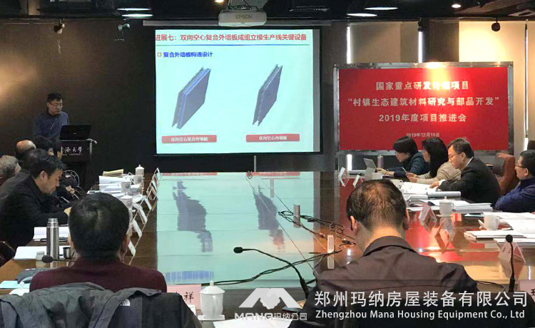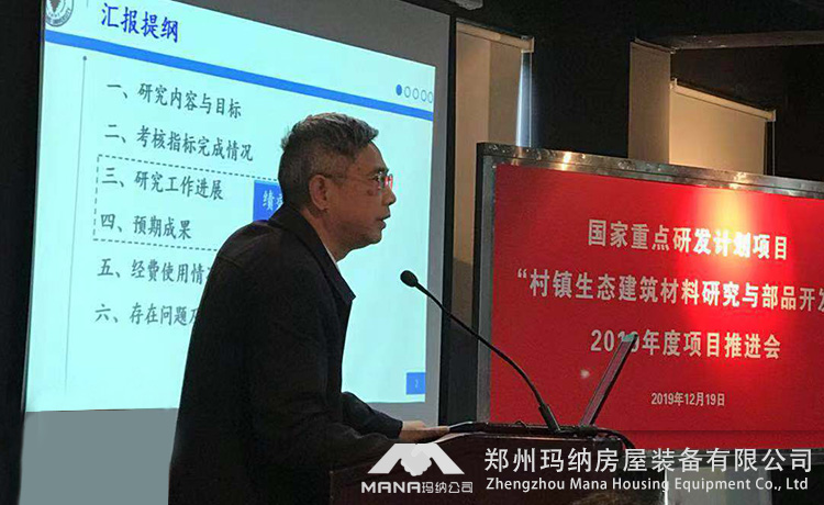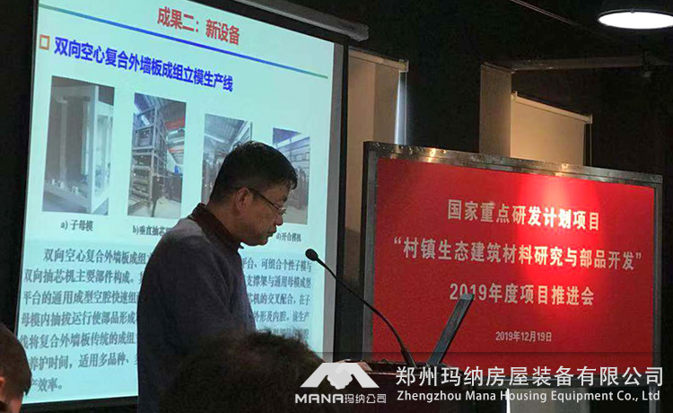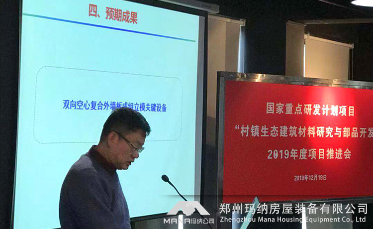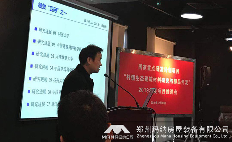 2019年12月18日-19日“十三五”國家重點研發(fā)計劃項目“村鎮(zhèn)生態(tài)建筑材料研究與部品開發(fā)”2019年度項目推進會在上海順利召開。此次參會人員包括專項專業(yè)機構(gòu)領(lǐng)導(dǎo)、項目責(zé)任專家及項目團隊,鄭州瑪納房屋裝備有限公司作為承擔(dān)此項目的重要研發(fā)團隊,指派研發(fā)代表一行人參加。