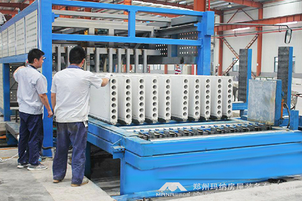 鑒于這種情況瑪納公司研制開發了M09輕質隔墻板機械設備,其特點是:結構簡單、配套設備少、價格符合市場行情,適用于大中小企業。大大減少了工人的勞動強度,節約了材料、降低了生產成本、提高了勞動生產率,提高了產品的質量。墻板經流水線澆注、整平、科學養護而成,生產自動化程度高,規格品種多。最重要的是,生產的輕質隔墻板可根據用戶需要,長度任意切割,且性能良好。
