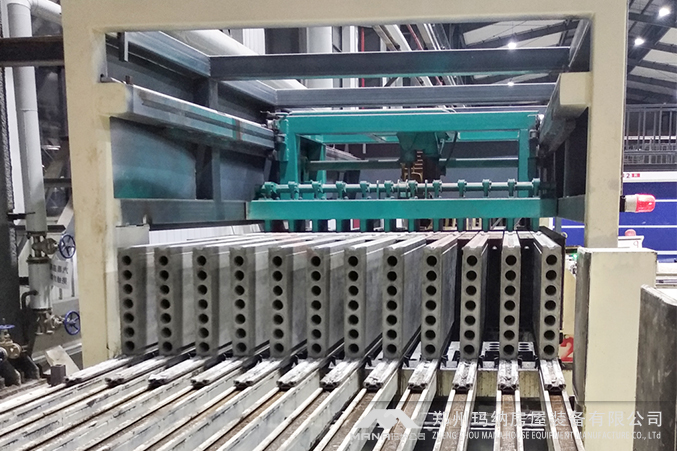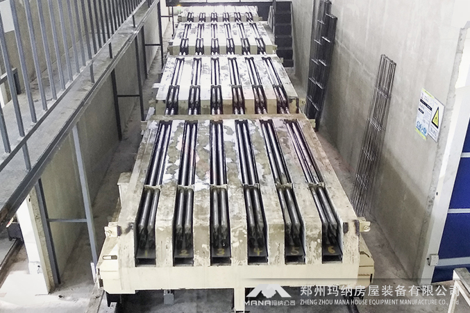 瑪納公司輕質隔墻板設備獲得客戶的廣泛好評,該生產線是在瑪納研制的機動成組立模墻板成型工藝的基礎上,經過技術升級創新研制而成的,可滿足各類輕質隔墻板的生產需要,設備組成主要有:成組立模成型主機、抽穿芯一體機、自動布料機、出板接板機構、震動上成型機、機械定位擺渡車等,具體配置依據客戶選擇可靈活配置。