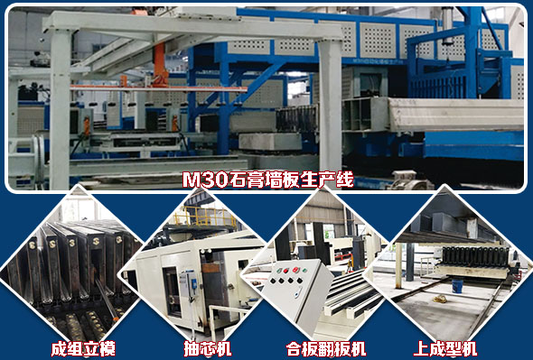 設備組成主要有:成組立模成型主機、抽穿芯一體機、自動布料機、出板接板機構等,所生產的石膏墻板具有高精度,耐火性和隔音性。