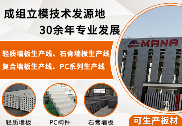 為克服現有輕質墻板機生產效率低、生產規格少的缺點,公司提供了一種生產效率高、產品質量穩定、生產規格多樣的輕質墻板機。瑪納公司全自動輕質墻板設備具有自動化程度高、生產效率高、可操作性和實用性強等特點。采用自動配料系統,原料計量準確,產品各項性能指標得到保證。設備生產工藝采用成組立模式成型工藝,降低了生產線過程中的能耗,無粉塵和噪聲污染,符合國家節能減排政策要求。