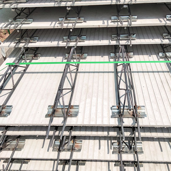 (4) 桁架筋替代現澆樓板鋼筋,減少現場鋼筋綁扎量,減少人工和工期。