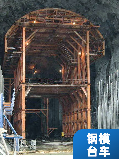 針梁式液壓鋼模臺車由圓弧鋼模板、內框架、型鋼組合大梁、行走系統、電器控制系統、液壓系統等組成。針梁式臺車襯砌時,隧洞襯砌混凝土底板、邊墻和頂部一次性成型。