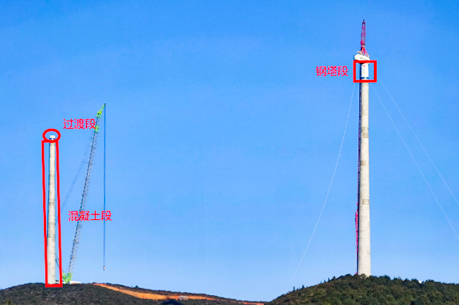 “混塔”就是風(fēng)電機(jī)組的塔架,由鋼材和混凝土共同構(gòu)成;塔架系統(tǒng)下部是混凝土段,上部是鋼塔段。