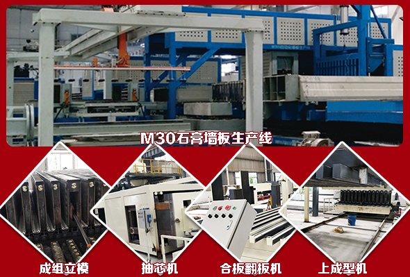 M30石膏墻板生產線:成組立模/抽芯機/合板翻板機/上成型機