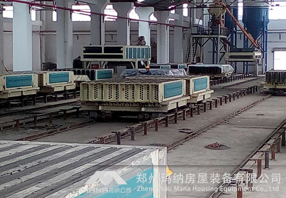 輕質隔墻板機增設了導向抽管裝置,使芯管在抽拔過程中軌跡得以確定?刂屏怂、裂紋、孔橋開裂等缺陷,保證了構件的內在質量。