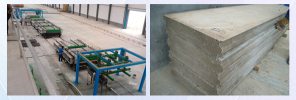 整個過程:配料→攪拌→置板→壓力輸送→澆注入!B(yǎng)護→開!霭鍣C出板→循環(huán)